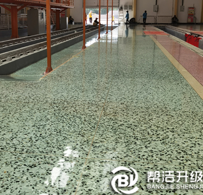 • 通遼車輛段修車庫水磨石地面防污抗?jié)B耐磨晶化處理